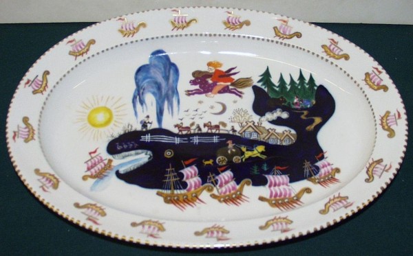 - Porcelain, overglaze decoration, gilding. 40 x 28 (овал)