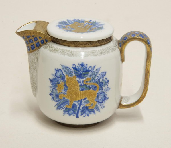 Молочник с крышкой из сервиза «Пряничный орнамент голубой»