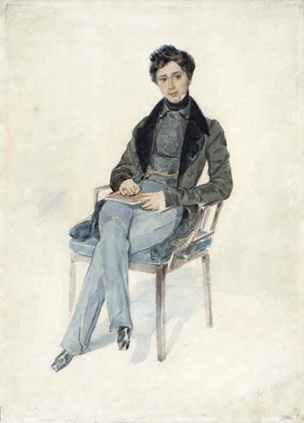 Давыдов Владимир Петрович (1809–1882) — граф Орлов-Давыдов (с 1856) — тайный советник, обер-церемониймейстер. Сын П. Л. Давыдова. Детство провел в Италии, много путешествовал. Учился в Эдинбургском университете. По возвращении в Россию служил в МИД. В 1862 был избран петербургским губернским представителем дворянства. Почетный член Академии наук (1878). В 1856 получил Высочайшее разрешение принять титул и фамилию деда по линии матери и именоваться графом Орловым-Давыдовым Был знаком с В. Скоттом, В.-И. Гете. Поддерживал семью В. Скотта после его смерти и способствовал изданию собрания сочинений писателя. Делал крупные пожертвования различным библиотекам и музеям. В 1834 году Брюллов писал в Риме семейный портрет Давыдовых, оставшийся незавершенным, где были изображены В. П. Давыдов, его жена О. И. Давыдова, урожденная княжна Барятинская и их дочь Наталья. // Великий Карл. К 225-летию со дня рождения К. П. Брюллова. СПб, 2024. С. 376.