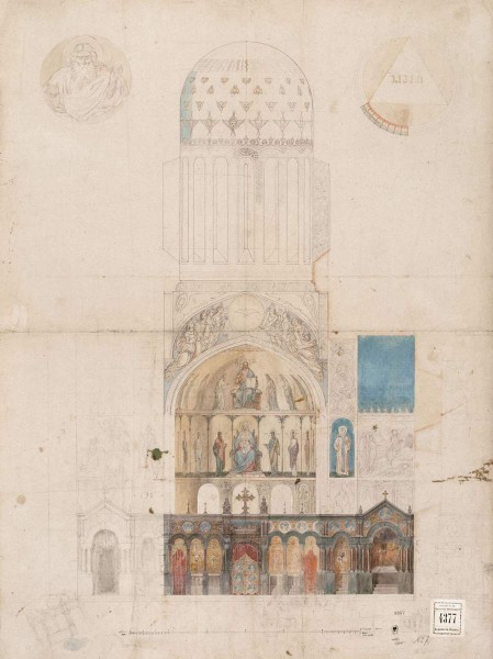 - Paper, watercolour, bronze paint, graphite pencil, ink, nib. 88,4 х 64,7