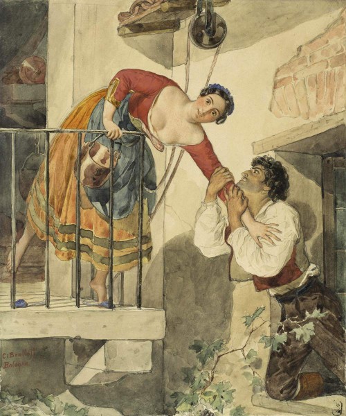 Акварель была литографирована А. А. Козловым, о чем он упоминал в письме к художнику. Н. Н. Соломатина // Великий Карл. К 225-летию со дня рождения К. П. Брюллова. СПб, 2024. С. 375.