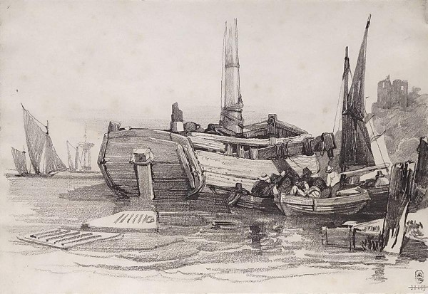 Обилие дошедших до нас рисунков с изображением плывущих и причаленных к берегу различной формы рыбачьих лодок и барок с поднятыми и приспущенными парусами, несомненно, участвовало в созревании замысла другой волжской картины Васильева «Вид на Волге. Барки», сохраняющей и теперь свое огромное значение среди многих, исполненных не только тогда, но и позднее пейзажей, посвященных великой русской реке. Мальцева Ф. С. Федор Александрович Васильев. Л., 1986. С. 39-40.