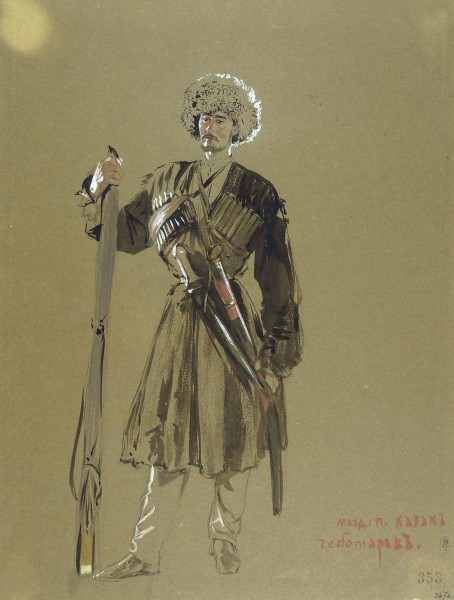 В 1842 году Григорий Гагарин написал серию портретов казаков Гребенского и Моздокского полков. Все портреты были сделаны на коричневой бумаге гуашью. Как и в предыдущих портретах, каждый изображенный казак отличается своей индивидуальностью, но при этом создан обобщенный, колоритный образ служилого казачества. Ольга Капарулина. Рисунки и акварели Г. Г. Гагарина в собрании Русского музея // Григорий Гагарин. СПб. 2010. С. 38-39.