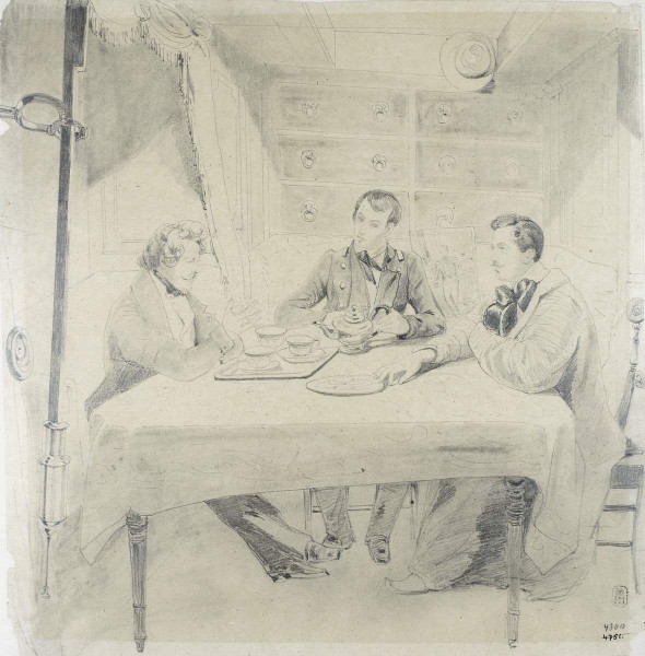 Изображены: Карл Павлович Брюллов (1799–1851), Владимир Алексеевич Корнилов (1806–1851), Григорий Григорьевич Гагарин