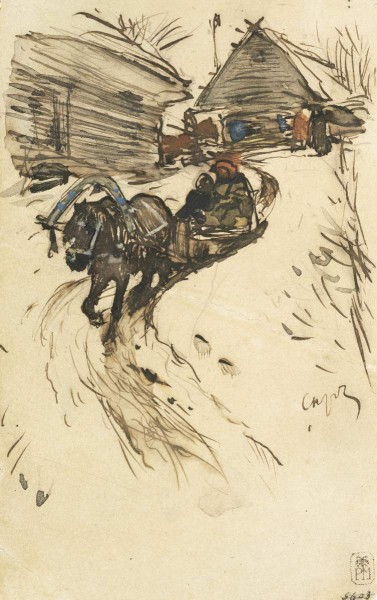 Использована композиция пастели «Зимой (Зима в Финляндии)» (1898, ГРМ). 1898