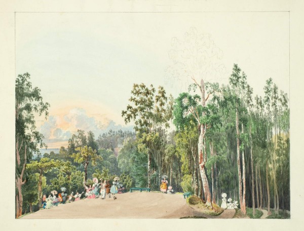 Ранние работы Садовникова отличались небольшим размером и предназначались главным образом для литографирования. Сохранилось несколько акварелей с видами достопримечательностей, украшавших Строгановскую дачу на Черной речке.<...>. Более уверенно исполнены пейзажные виды Парголова в усадьбе графини В. П. Полье в 1833 году. В них очевидно внимательное и любовное отношение к природе. Некоторые из этих видов были литографированы в публикациях знаменитого мецената, комиссионера Общества поощрения художеств и книгоиздателя Андрея Михайловича Прево (1801–1867). Капарулина О. А. Василий Садовников — акварелист пушкинской поры // Василий Семенович Садовников. СПб. 2025. С. 7.