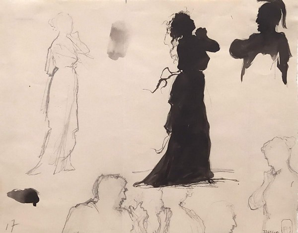 - Бумага, графитный карандаш, тушь. 12 x 15,6