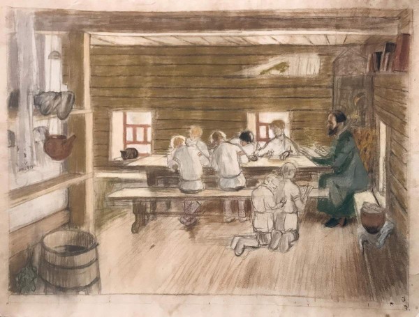 Эскиз картины «Земская школа в Московской Руси» (1907).