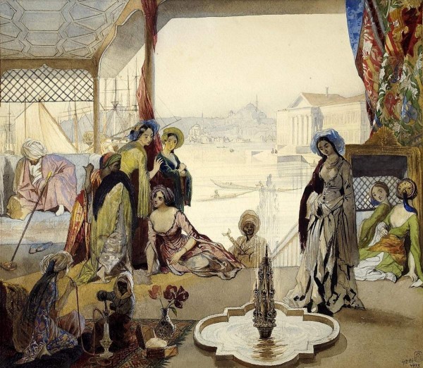Несколько месяцев знаменитый художник пробыл в гостях у Гагарина в Константинополе в Буюк-Дере, а затем в Пере. Они жили в одной комнате и вечерами много беседовали. Результатом общения стало несколько выразительных портретных набросков с Карла Брюллова. В это время созданы акварели «Гарем» и «Вид Константинополя с кладбища в Пере». Ольга Капарулина. Рисунки и акварели Г. Г. Гагарина в собрании Русского музея // Григорий Гагарин. СПб. 2010. С. 36.