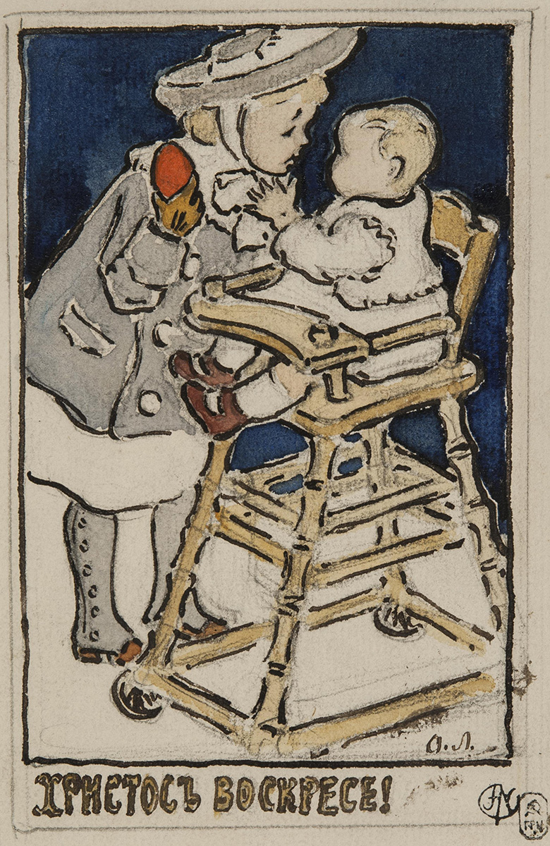 Эскиз пасхальной открытки (не издана). Издания общины Св. Евгении. Середина 1900-х