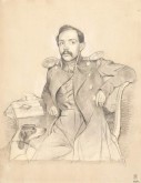 - Paper, graphite pencil. 21 x 18,5 (лист неправильной формы; рисунок обрезан по контуру и наклеен на бумагу, штриховка на которой нанесена посторонней рукой)