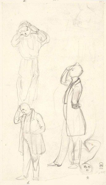Как люди причесываются. Три наброска. Мужская и женская фигуры. Наброски