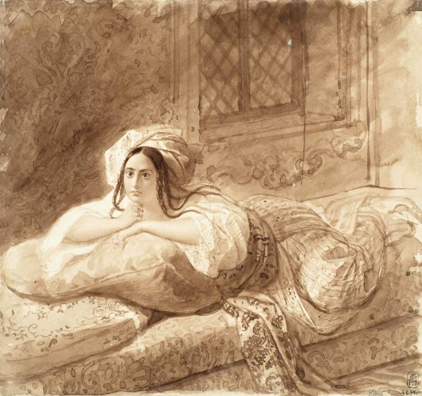 После возвращения в Россию в 1836 году Брюллов не оставлял восточную тему. Он создал несколько живописных произведений («Бахчисарайский фонтан», «Одалиска»), станковые сепии и акварели. В рабочих альбомах сохранились десятки набросков композиций и отдельных фигур, которые возникают на страницах рядом с замыслами росписей Исаакиевского собора, портретными набросками. Восточная тема оставалась некой константой в его творчестве длительный период. Э. Н. Ацаркина датировала значительное число графических листов, посвященных Востоку 1837—1840 годами, Е. И. Гаврилова предлагала более широкий период — 1838—1849 годы. Н. Н. Соломатина // Великий Карл. К 225-летию со дня рождения К. П. Брюллова. СПб, 2024. С. 380.