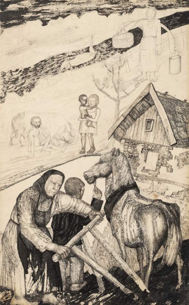 - Бумага, тушь, графитный карандаш. 31,7 x 20