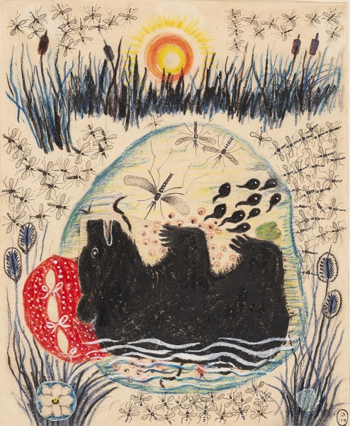 - Paper, цветной карандаш, литографский карандаш, ink, white pigment. 21,5 х 17,6