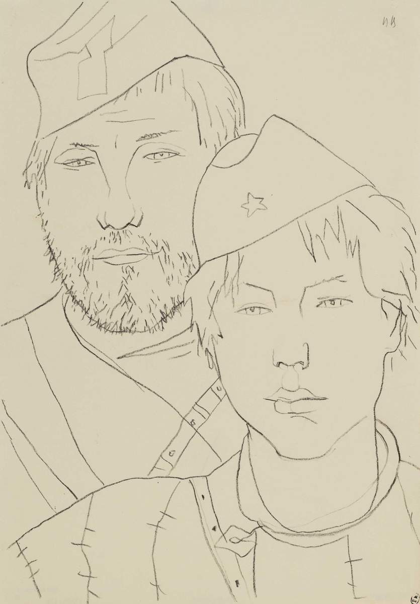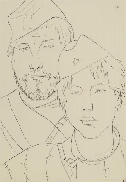 Фронтовые зарисовки занимают большое место в творческом наследии Василия Власова. Великолепный рисовальщик, он в непростых условиях коротких передышек между боями делал портреты бойцов. Без каких-либо подготовительных наметок компоновал лист, очень точно передавал портретное сходство. Страна побед. СПб, 2025. С. 145.