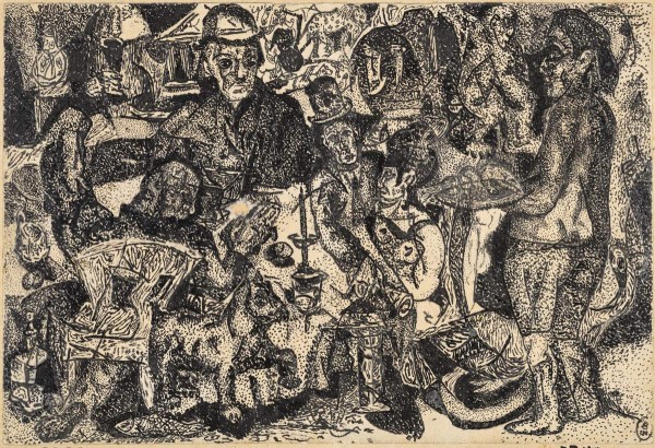 - Бумага на картоне, тушь, графитный карандаш. 16,6 x 24,4