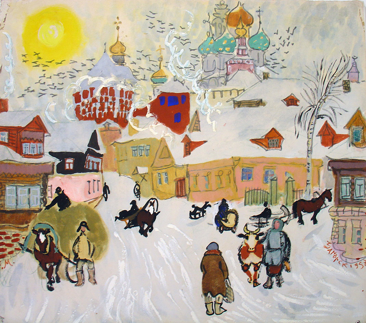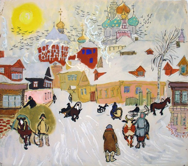 После Сергиева Посада (Загорска), первого из старорусских городков, полюбившихся Мавриной, последовали многие другие. В послевоенные десятилетия появились серии рисунков, акварелей и гуашей, посвященные Суздалю и Звенигороду, Ростову Великому и Вологде, Дмитрову и Касимову, Угличу и Борисоглебску.