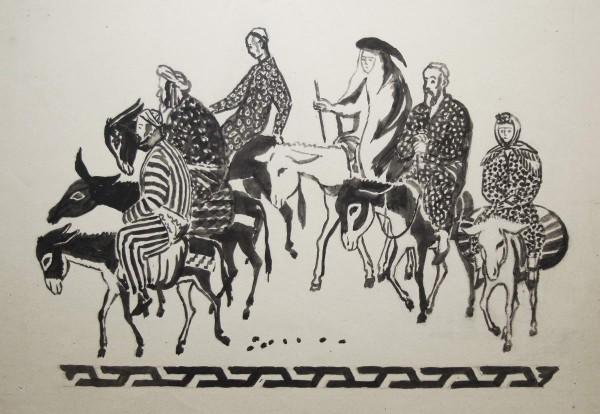 Затем я делал «Возвращение с базара». Это кавалькада на осликах. <...> тут я особенно сильно хотел черным с белым выразить разноцветность одежды.