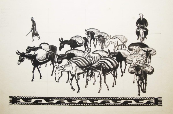 Эскиз к линогравюре «Самарканд. На базаре. Ослики»