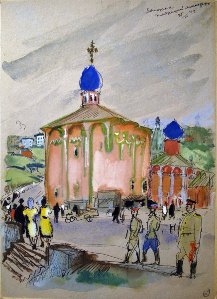 После Сергиева Посада (Загорска), первого из старорусских городков, полюбившихся Мавриной, последовали многие другие. В послевоенные десятилетия появились серии рисунков, акварелей и гуашей, посвященные Суздалю и Звенигороду, Ростову Великому и Вологде, Дмитрову и Касимову, Угличу и Борисоглебску. Наталья Козырева // Татьяна Маврина. СПб. 2004. C. 4.