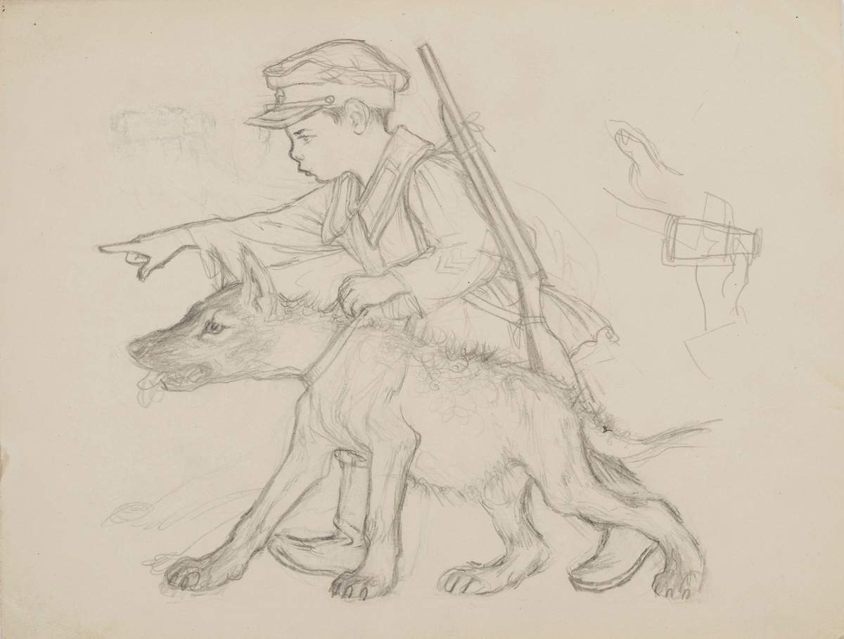 Эскиз иллюстрации к стихотворению С. Маршака «Мы военные». 1938