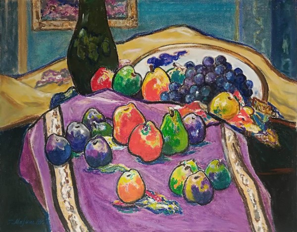 Натюрморт. Фрукты на розовой драпировке