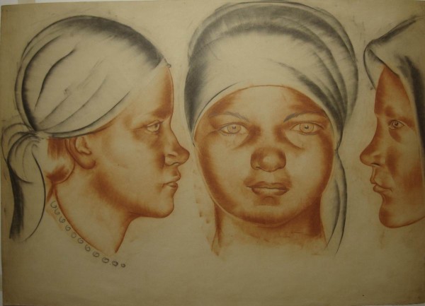 - Paper, sanguine, graphite pencil. 37,8 x 53,2
