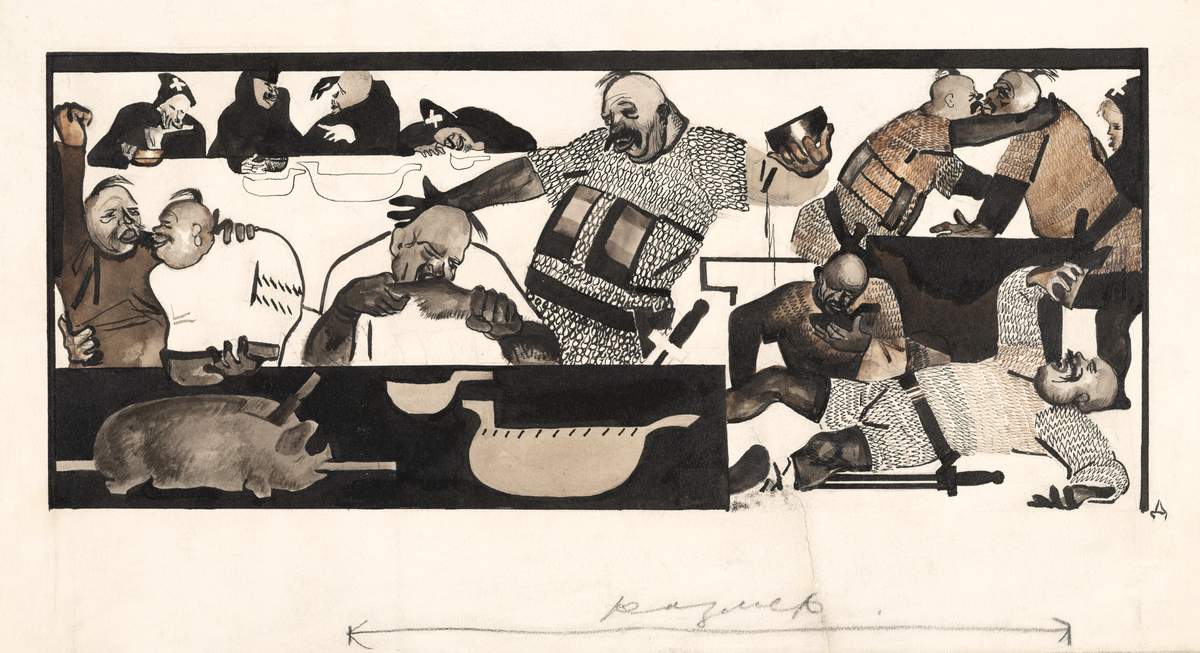 В 1920-е годы Дейнека оттачивал свой графический стиль в многочисленных рисунках для журналов («Прожектор», «Безбожник», «Безбожник у станка») — они отличались остротой, нередко подчеркнутым гротеском, эти же черты позднее проявились в листах, созданных в США, Париже, Риме, Берлине и Вене. Н. М. Козырева. Дейнека — «первый советский художник» // Александр Дейнека. Певец новой жизни. К 125-летию со дня рождения. СПб. 2025. С. 6.
