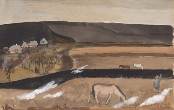 - Paper, watercolour, gouache. 30,5 x 48