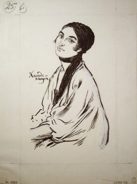 Портрет турецкой писательницы Халиде-Ханум. Иллюстрация к книге Е.Е. Лансере "Лето в Ангоре". 1922
