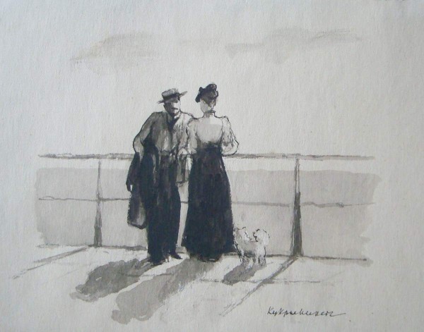 Иллюстрация к рассказу А. П. Чехова «Дама с собачкой». 1945
