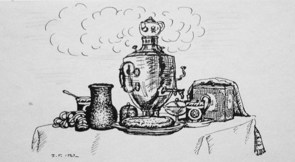 Home page Online resourcesCollectionsDrawing and Waterсolours Чайный стол Kustodiev B. M. 1818, Astrakhan - 1927, Leningrad Чайный стол Иллюстрация к главе XI рассказа Н. С. Лескова «Штопальщик». Пг: Аквилон. 1922 Paper, ink, nib. Л.: 7,2 x 14; И.: 6,1 x 9 РС-769 Пост. в 1946 через ЛГЗК от М. В. Кантор (1940), Ленинград Period Early 20th century CategoryIllustration, Still Life Keywords World of Art | Leskov and his Heroes | crockery Virtual exhibitions and 3d-tours Boris Mikhailovich Kustodiev. To the 145th anniversary of his birth Share «Виртуальный Русский музей» в социальных сетях: