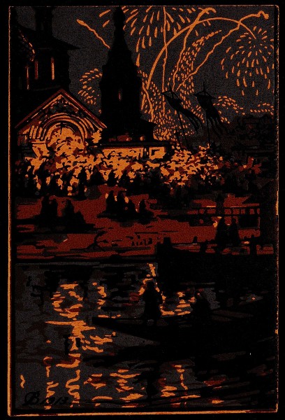 - Линогравюра цветная в 4 доски. И.: 13,7 х 9,2. Л.: 13,7 х 9,2