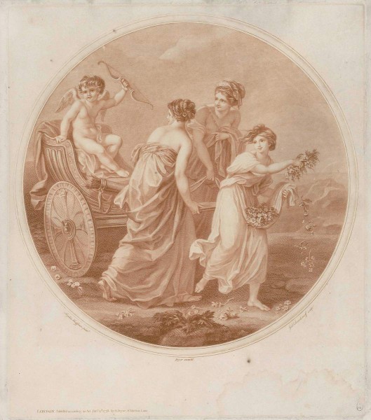В течение ряда лет главной работой Скородумова было воспроизведение в гравюре картин Анжелики Кауфман — модной художницы, создававшей композиции по античным мотивам. Всего им были исполнены 24 гравюры с ее оригиналов. Именно в этих листах, пользовавшихся большой популярностью в Англии, Скородумов и создал свой стиль цветной гравюры. Елена Мишина // Гавриил Иванович Скородумов. СПб, 2000. С. 3.