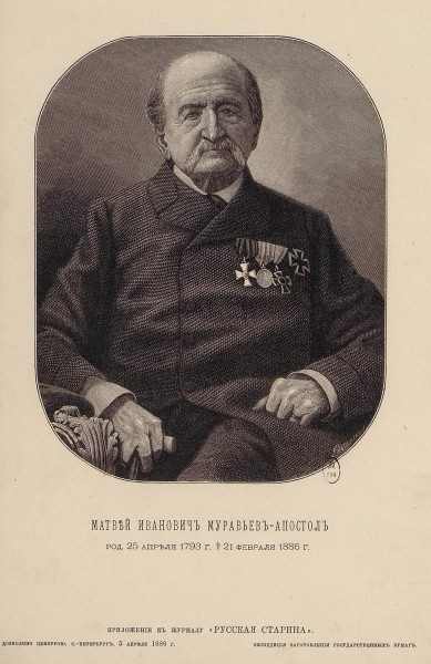 Матвей Иванович Муравьёв-Апо́стол (1793—1886) — декабрист, участник восстания Черниговского полка, автор воспоминаний. Его братья Ипполит и Сергей также декабристы. Сергей был казнён как один из предводителей восстания.