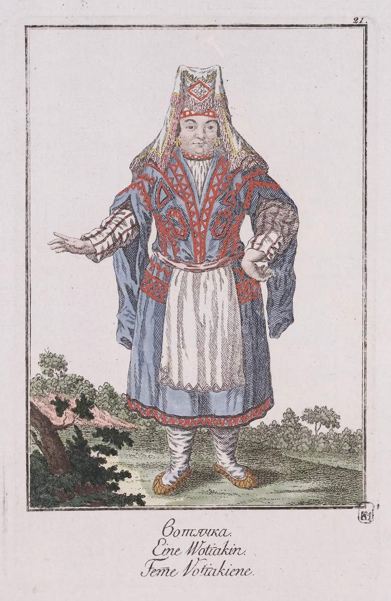 В собрании Русского музея хранятся иллюстрации из редкого издания Иоганна-Готлиба Георги «Описание всех обитающих в Российском государстве народов: их житейских обрядов, обыкновений, одежд, жилищ, упражнений, забав, вероисповеданий и других достопамятностей» (СПб, 1799). Первое издание вышло в Санкт-Петербурге в 1776–1780 годах на немецком языке, частично переведено на русский. В 1799 году работа была полностью переведена на русский язык, вышло второе издание.