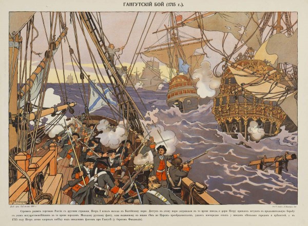 27 июня /7 августа 1714 года в Балтийском море у мыса Гангут (ныне полуостров Ханко) состоялось морское сражение между русскими и шведами. Это была первая в истории России морская победа русского флота. Петр I лично участвовал в абордажной атаке, в ходе которой русские захватили 10 шведских кораблей. Страна побед. СПб, 2025. С. 63.