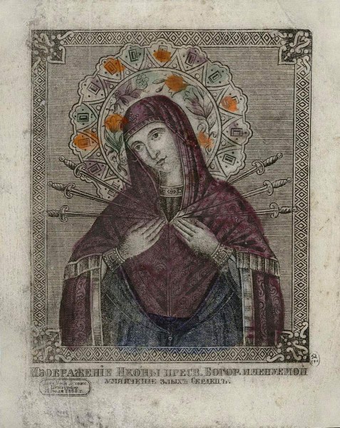 Home page Online resourcesCollectionsGraphic Art Богоматерь Умягчение злых сердец Unknown engraver Богоматерь Умягчение злых сердец 1868 Paper, гравюра. И.:16,7 х 13,9. Л.:21,7 х 17,2 Гр.Луб.-3605 Пост. из Пушкинского дома Period Late 19th century Typology / subtypepopular print CategoryBiblical Subject Keywords The Mother of God | Our Lady of Softening of Evil Hearts Virtual exhibitions and 3d-tours «Пречистому образу Твоему поклоняемся...» Share «Виртуальный Русский музей» в социальных сетях:
