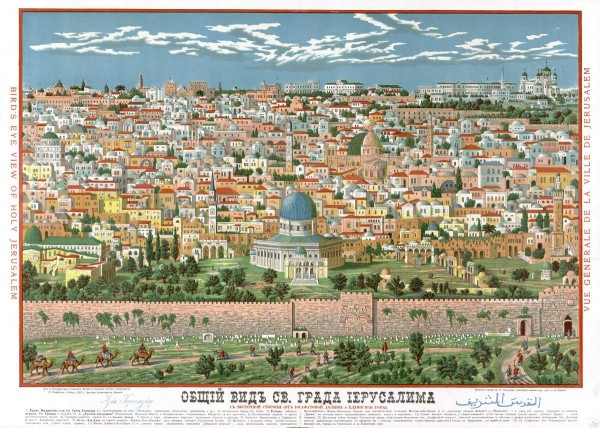 Иерусалим – столица древнееврейского государства Иудеи. Город хорошо виден с Елеонской горы, на которой Иисус предрек его разрушение. С Иерусалимом тесно связаны последние дни земной жизни Иисуса Христа. В этом городе Его торжественно встречал народ, усыпая путь цветами, здесь же Он был осужден на смерть и истязаем. Ольга Капарулина // Иисус Христос. СПб, 2000. С. 474.