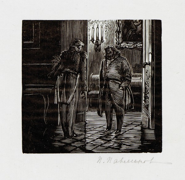 - Бумага, гравюра на дереве. И.:8,6х9. Л.:14,7х14,7