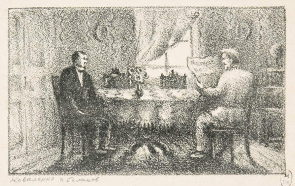 Коваленко и Беликов. Иллюстрация к повести А. П. Чехова «Человек в футляре»