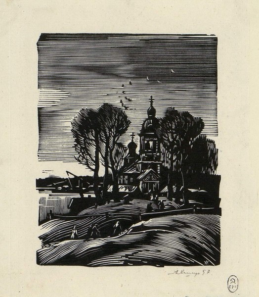 - Бумага, ксилография. И.: 11,3х9. Л.: 15,7х 12,6