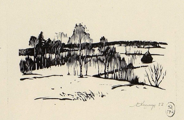 - Бумага, ксилография. И.: 4,4х8,2. Л.: 10,6х15,1