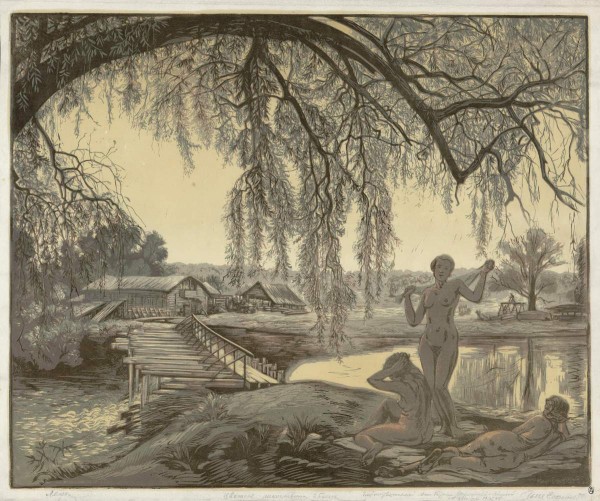 - Линогравюра цветная в 5 досок. И.: 49,5 х 61. Л.: 54,7 х 63,7