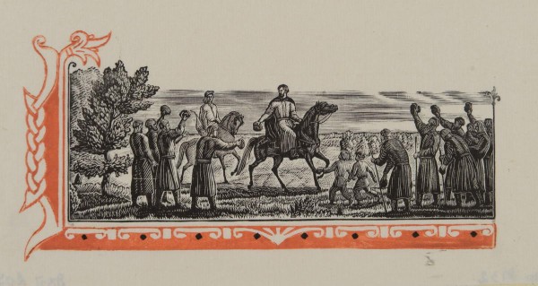 «Слово о полку Игореве» — гениальное произведение древнерусской литературы, созданное в 1187 году. Поэма проникнута теплым, нежным и сильным чувством любви к Родине. Среди многочисленных иллюстраций к поэме широкое признание получили гравюры В. А. Фаворского. Первое издание поэмы с гравюрами Фаворского было выпущено в 1938 году. После окончания войны художник снова вернулся к работе над «Словом». Вариант, выполненный в 1950-1951 годах, получил широкую известность и позднее, наряду с гравюрами к «Борису Годунову» и «Маленьким трагедиям» А. С. Пушкина, был удостоен Ленинской премии.