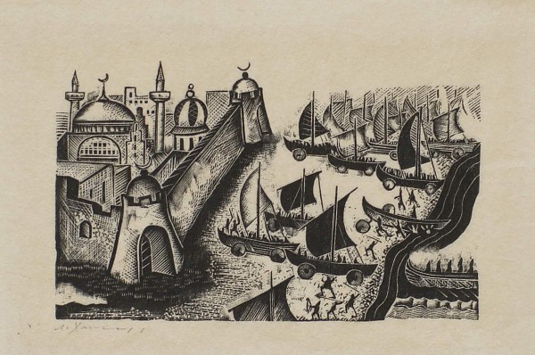 - Бумага, ксилография. И.:4,8х8. Л.:7,5х11