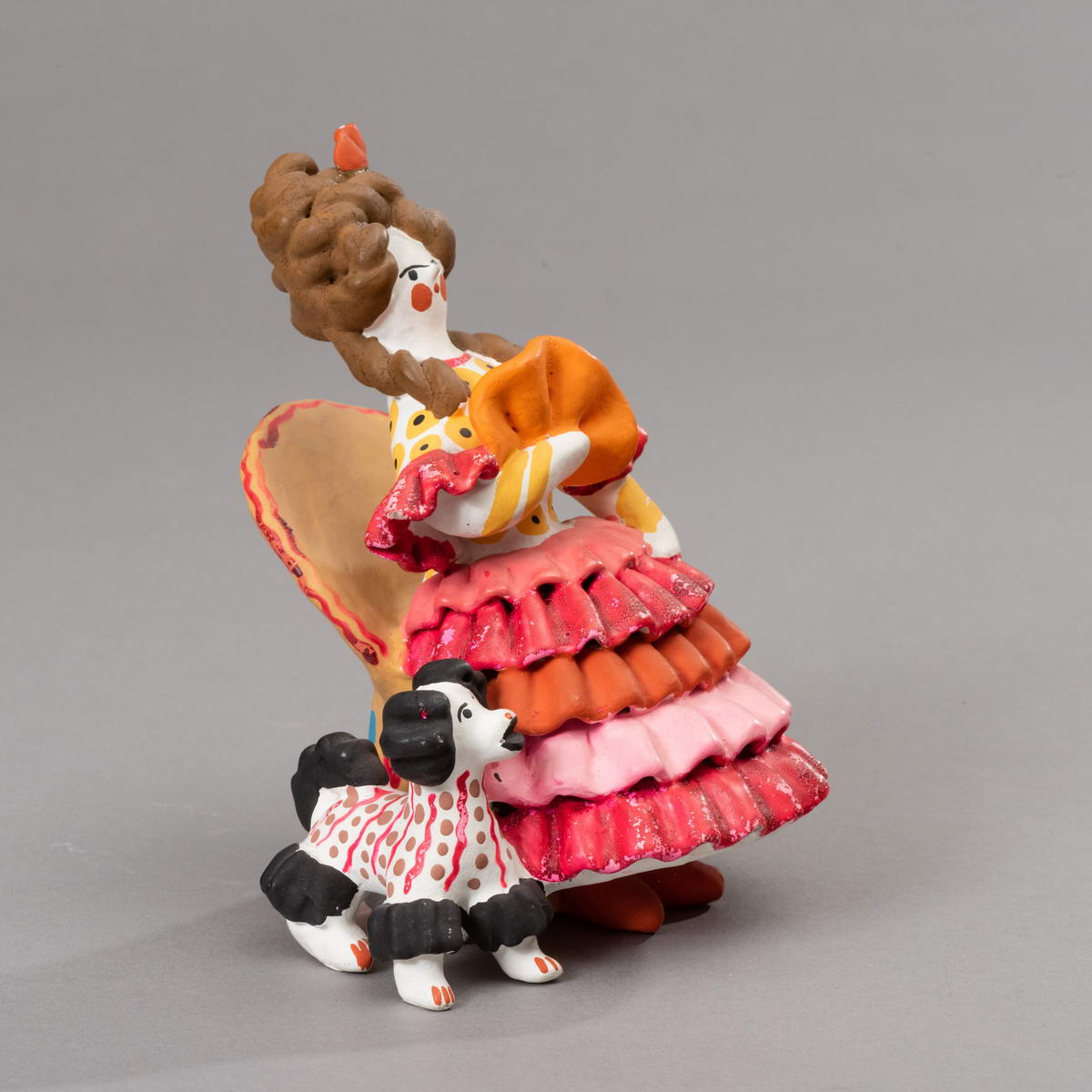 В 1930–1940-х годах, с началом бурного развития жанрового начала, в дымковской игрушке  мастерицы активно вводят их в различные многофигурные композиции-сценки (Елизавета Пенкина «Лодка с мальчиком и собакой» (1930-е), Мария Ворожцова «В лесу» (1940-е)). Любимыми эти сюжеты остаются и в творчестве новых поколений дымковских мастериц второй половины ХХ века: Нины Борняковой, Валентины Племянниковой, Нины Сухановой, Надежды Трухиной, Анфисы Ворожцовой, Риммы Пенкиной. Ирина Колобкова, Мария Плотникова. Народная игрушка // Жизнь замечательных собак. СПб, 2025. С. 217.