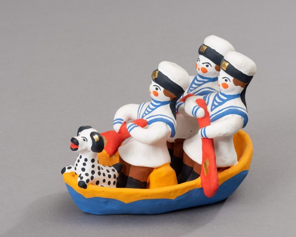 В 1930–1940-х годах, с началом бурного развития жанрового начала, в дымковской игрушке мастерицы активно вводят их в различные многофигурные композиции-сценки (Елизавета Пенкина «Лодка с мальчиком и собакой» (1930-е), Мария Ворожцова «В лесу» (1940-е)). Любимыми эти сюжеты остаются и в творчестве новых поколений дымковских мастериц второй половины ХХ века: Нины Борняковой, Валентины Племянниковой, Нины Сухановой, Надежды Трухиной, Анфисы Ворожцовой, Риммы Пенкиной. Ирина Колобкова, Мария Плотникова. Народная игрушка // Жизнь замечательных собак, 2025. СПб. С. 217.