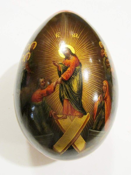 Яйцо пасхальное с изображением Сошествия во Ад и соборов Московского Кремля